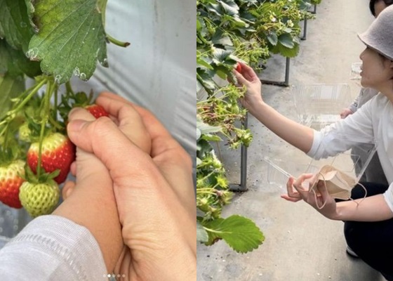 공개 된 사진에는 채림과 아들 리우군이 함께 딸기농장에서 딸기를 따는 체험을 하는 모습이 담겨 있다.