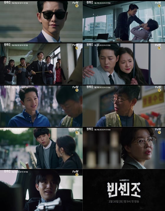 공개된 예고 영상은 송중기의 강렬한 연기 변신과 범상치 않은 캐릭터들의 향연으로 시선을 끈다. 이탈리아 마피아의 콘실리에리 빈센조, 한국에 들어온 그는 시작부터 난관에 부딪힌다. 누구도 함부로 건드리지 못했던 센 놈 빈센조가 의문의 일격을 당한 것. 한국은 그에게 마피아들의 소굴보다 더 위험한 곳이었다. 한 치의 흐트러짐 없던 빈센조의 꼬질꼬질한 자태가 앞으로 벌어질 심상치 않은 사건들을 예고했다.