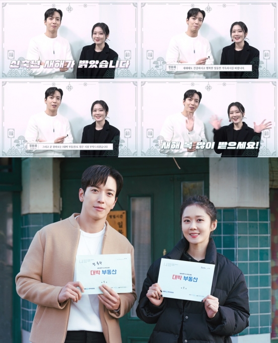 이와 관련 ‘대박부동산’ 주역 장나라와 정용화가 설렘 가득한 눈빛과 상큼한 미소를 드리운 ‘대본 인증샷’과 더불어 ‘새해 인사’를 남겨 눈길을 끌고 있다. 지난 10일 공개된 새해 인사 영상에서 장나라와 정용화가 시청자들에게 신축년 새해를 맞은 희망의 메시지를 전해 뜨거운 호응을 이끌어내고 있는 것.
