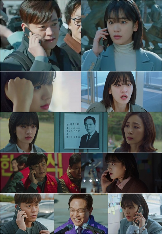 이진우와 서정인은 분명 같은 장소에 있었지만, 현장 분위기는 사뭇 달랐다. 이진우가 있는 곳엔 서기태 의원의 선거 유세가 한창이었지만, 서정인의 시야는 휑할 뿐이었다. 수화기 너머로 서기태 이름 석 자를 연호하는 지지자들에 뒤이어 "안녕하십니까. 서기태입니다"라는 아버지의 목소리가 선명하게 들려오자 서정인은 충격에 빠졌다. 이렇게 이진우와 서정인이 전화로 연결된 엔딩은 웅장한 사운드와 맞물렸고, 켜켜이 쌓아온 긴장감이 폭발하며 안방극장엔 전율이 일었다.
