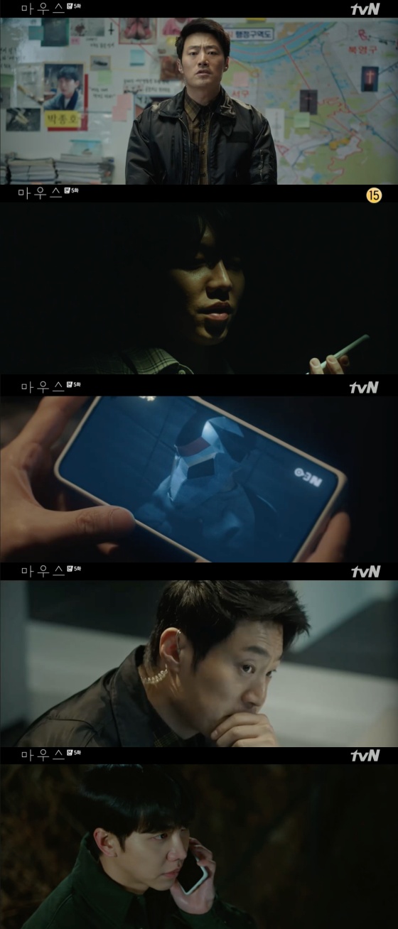 17일 오후 방송된 tvN 수목드라마 '마우스'에는 고무치(이희준 분)와 정바름(이승기 분)이 합세해 한국이를 납치한 연쇄살인마를 쫓는 장면이 담겼다.