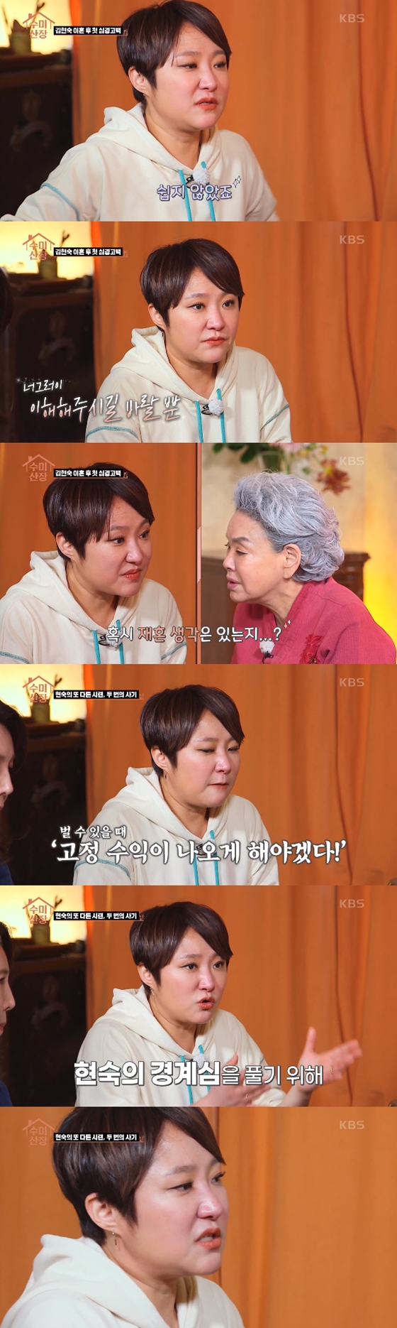 '수미산장'을 통해 김현숙은 마음 속에 놓아둔 아픔을 함께 나눴다. 응원과 격려를 받으며 새로운 출발을 기대케 했다.
