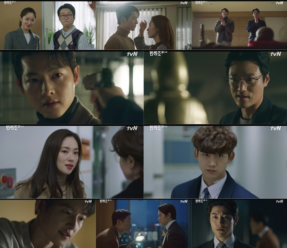 이날 빈센조(송중기 분)와 홍차영(전여빈 분)은 바벨의 진짜 회장 장한석, 즉 장준우(옥택연 분)를 세상에 끌어내기 위한 작전을 펼쳤다. 빈센조는 장준우를 대놓고 압박하기 시작했고, 우상은 빈센조와 검찰의 움직임에 대비하기 위해 또다시 악행을 벌였다. 한편, 빈센조는 마침내 조사장(최영준 분)과 함께 금괴가 있는 지하 밀실에 입성했다. 그러나 금을 마주한 짜릿한 순간, 조사장이 빈센조에게 총을 겨누면서 반전이 일어났다. 예측하지 못했던 빈센조의 위기는 다음 전개에 대한 궁금증을 증폭했다.