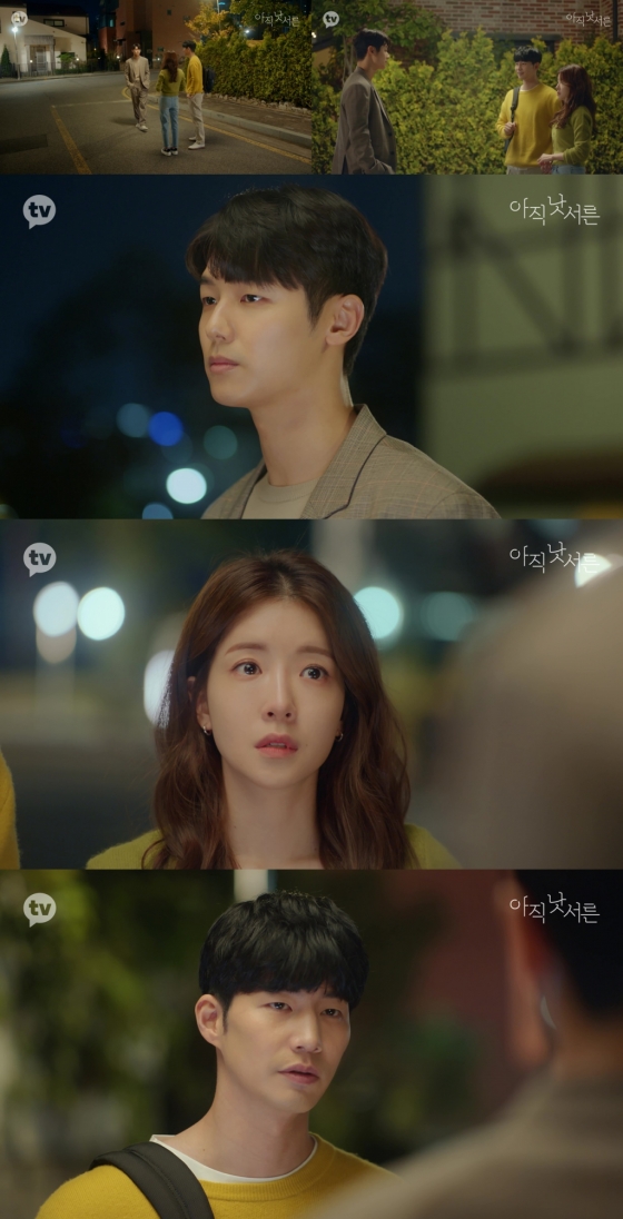 이런 가운데 30일 오후 5시에 공개될 '아직 낫서른' 11화에서는 서지원과 이승유, 차도훈의 삼자대면이 예고돼 팽팽한 긴장감을 그려내고 있다. 여느 때처럼 작품 이야기를 나누던 서지원과 차도훈 앞에 이승유가 갑작스럽게 나타나며 이들의 아슬아슬한 조우가 펼쳐지는 것. 서지원과 차도훈이 화기애애하게 웃고 있는 모습을 본 이승유는 뜨거운 분노를 간신히 억누르는 듯한 표정을 지어보이고, 서지원은 아랑곳하지 않은 채 "우리 일 얘기 중이었는데"라며 서늘한 반응을 보인다. 급격히 다른 두 사람의 온도차에, 처음에는 그를 반갑게 맞이하던 차도훈도 "뭔가 오해를 하신 것 같다"며 불편한 기색을 드러내기도.