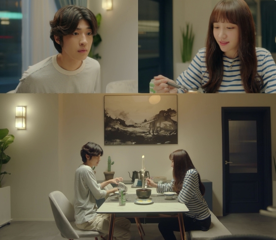 이번에 공개된 스틸은 유일하게 진행하고 있던 라디오 프로그램 폐지로 눈물을 쏟은 이란주를 향한 형준영의 특급 내조를 예고하고 있어 시청자들의 연애 세포를 더욱 활성화시킨다. 이란주의 상처를 섬세하게 헤아리며 그녀의 곁을 지켰던 형준영이 이번에는 따뜻한 식사를 차려내 그녀의 마음 속 깊이 온기를 채우는 것. 식탁에 마주 앉아 이란주의 반응을 기다리는 듯한 형준영과, 숟가락을 든 채 놀란 눈으로 미소 짓는 이란주의 표정은 그의 달콤한 내조가 성공적이었음을 직감하게 한다. 또한 편안한 티셔츠 차림으로 집밥을 함께하고 있는 두 사람의 모습에서는 설렘과 안정감이 동시에 느겨진다.