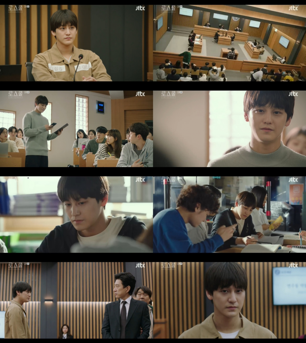 이날 준휘는 모의재판 쉬는 시간 중 법대 밑에 누워있다 재판에 대해 티격태격하는 로스쿨 동기들 사이에서 등장했다. 그는 묵비권은 증인이 아니라 피고인이 하는 거라며 민복기(이강지 분)의 말을 바로잡고, 동시에 강솔A(류혜영 분)의 실수도 예리하게 고쳐줬다. 또한 그는 이어지는 솔A의 질문에도 능숙하게 대답하며 눈에 띄는 지성미를 뽐냈다.