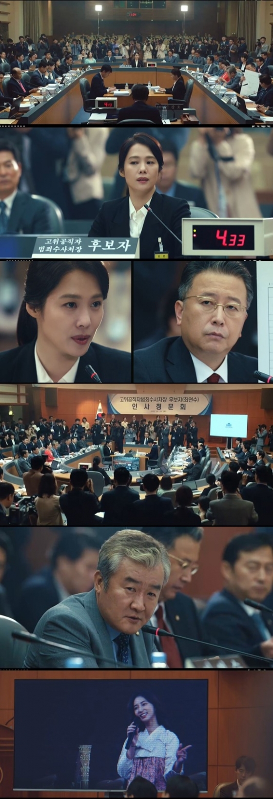 7일 오후 방송된 JTBC 금토드라마 '언더커버'에서는 약자를 위한 인권 변호사 최연수(김현주 분)의 초대 공수처장 인사청문회 장면이 그려졌다.
