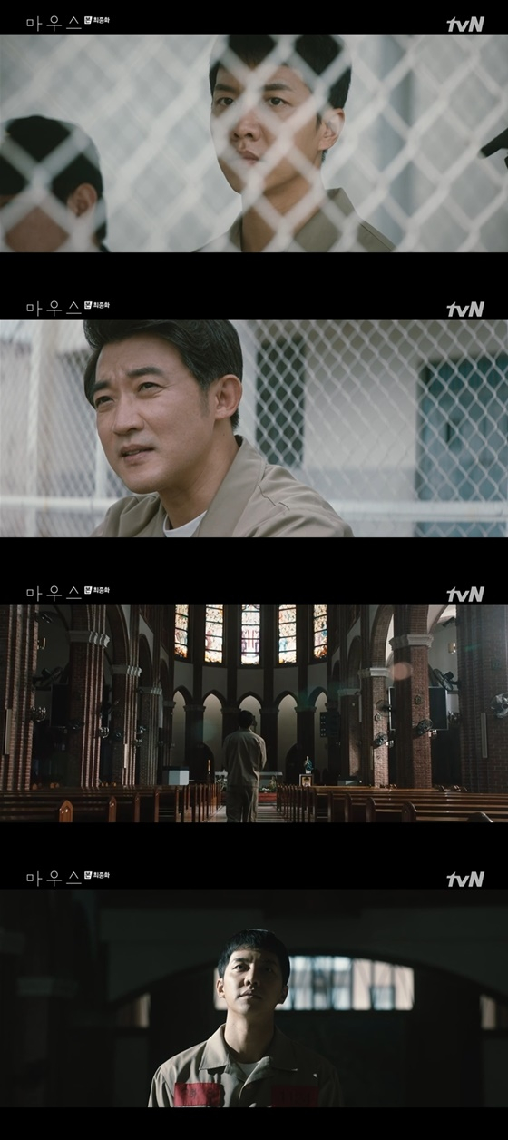 19일 오후 방송된 tvN 수목드라마 '마우스'(극본 최란, 연출 최준배, 제작 하이그라운드·스튜디오 인빅투스)에서는 정바름(이승기 분)이 최후의 모습을 맞는 모습이 그려졌다.