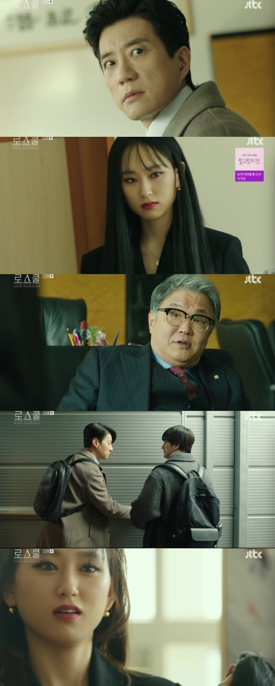 3일 오후 방송된 JTBC 수목드라마 '로스쿨'에는 한준휘(김범 분), 강솔A(류혜영 분), 서지호(이다윗 분), 전예슬(고윤정 분), 민복기(이강지 분) 등 로스쿨 학생들이 모여 고형수(정원중 분)를 잡으려는 장면이 담겼다.