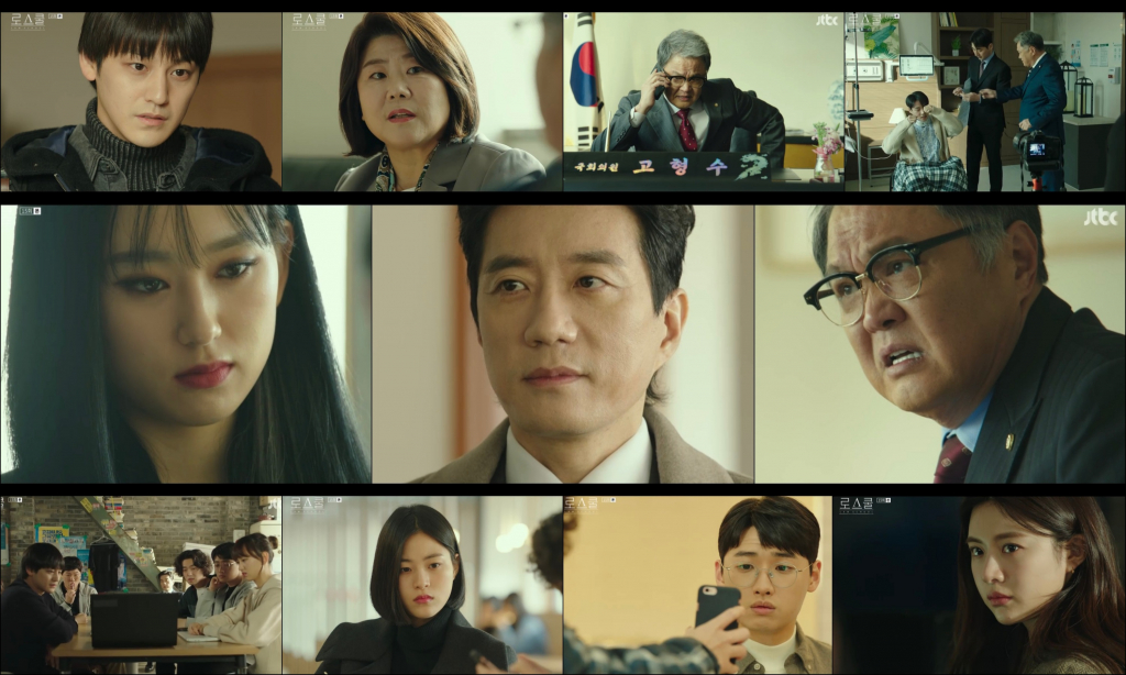 고형수가 강단의 지시대로, 조직원들을 시켜 실시간으로 댓글을 감쪽같이 지우자, 양종훈이 경찰을 대동하고 나타나 압수수색을 시작했다. 그리고 그때, 분노한 고형수를 바라보며 강단이 가발을 벗었다. 쌍둥이라는 점을 이용, 강솔A가 강단을 연기한 것. 앞서 그녀는 로스쿨 아지트까지 강단으로 등장, 동기들을 속일 수 있는지도 확인해보는 등 치밀하게 작전을 준비했다. 양종훈과 강솔A의 합작에 전율이 인 그 시각, 한준휘(김범)는 김은숙 교수, 서지호, 박근태(이천희) 변호사, 그리고 경찰들과 함께 댓글 조작 조직원들을 소탕했다. 앞서 주래동 뺑소니 사건 당일, 서병주(안내상) 보다 하루 빠르게 장례식장을 다녀와 차에 동승하지 않았다고 주장한 고형수의 진술을 반박할 증거까지 나온 상황. 이번에도 교묘히 법망을 빠져나가려던 법꾸라지 고형수의 비리를 뿌리 채 뽑은 통쾌한 정의구현의 순간이었다.