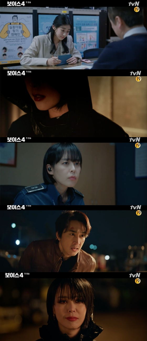 '보이스 시즌4'의 송승헌이 절대 청력 빌런에 동생을 잃었다. 이하나는 똑같이 생긴 빌런의 등장으로 체포 위기에 놓였다.