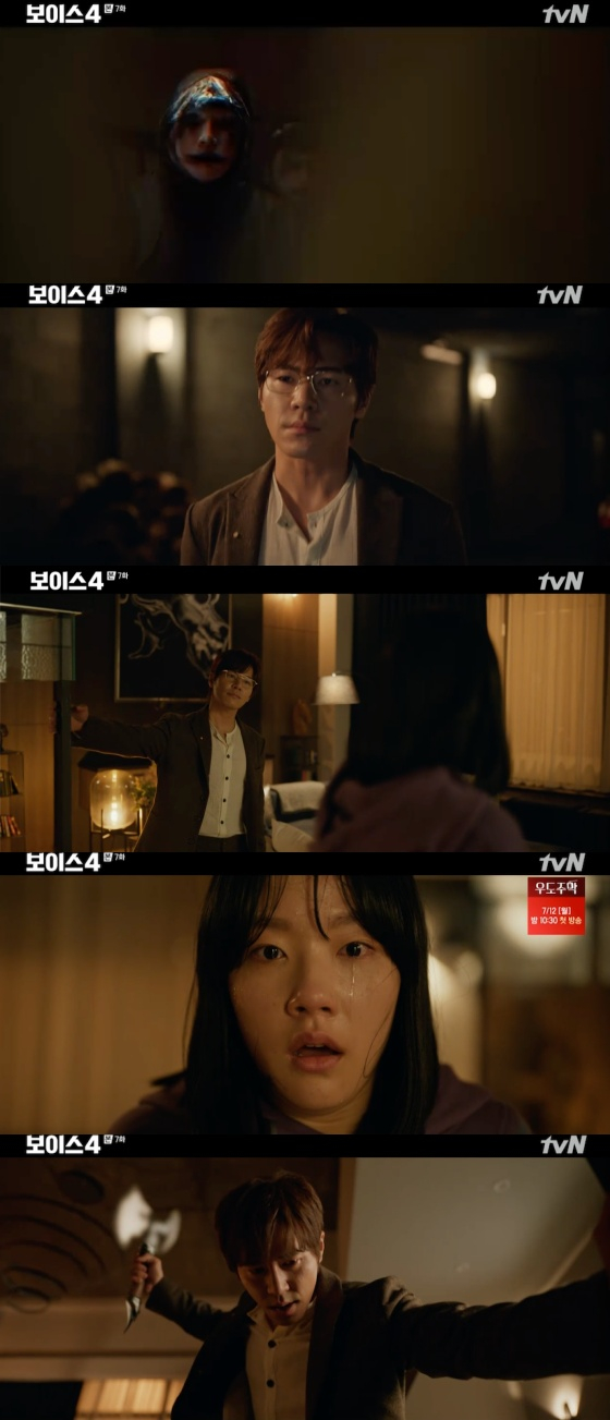 '보이스 시즌4'의 송승헌이 이하나에게 어린 시절 어머니가 납치당한 것을 목격했다고 고백했다. 이규형은 채원빈을 살해하려했다.