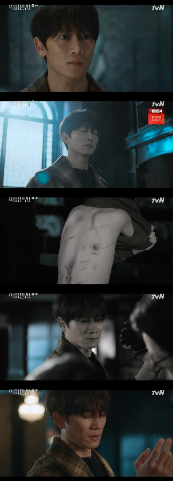 지난 17일 방송된 tvN 토일드라마 '악마판사'에서는 김가온(진영 분)과의 대화 끝에 홀로 과거를 직면한 강요한(지성 분)의 모습이 그려졌다.