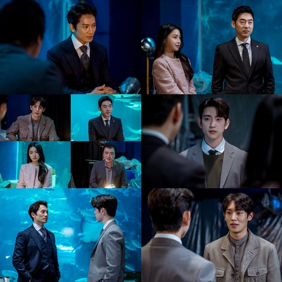 25일 tvN 토일드라마 '악마판사'(극본 문유석·연출 최정규, 제작 스튜디오드래곤, 스튜디오앤뉴)에서 김가온(진영 분)이 강요한(지성 분)과 그의 조력자 K(이기택 분) 등 낯익은 인물들을 두루 마주한 현장이 공개됐다.