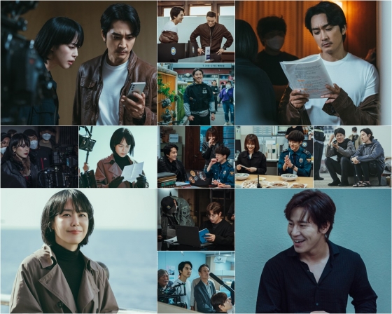 28일 tvN 금토드라마 '보이스4: 심판의 시간'(극본 마진원, 연출 신용휘, 제작 스튜디오드래곤·보이스 프로덕션)(이하. '보이스4') 측이 금주 종영을 앞두고 막바지 촬영에 한창인 송승헌(데릭 조 역), 이하나(강권주 역), 이규형(동방민 역), 손은서(박은수 역), 백성현(심대식 역), 강승윤(한우주 역), 김중기(박중기 역), 한종훈(채드 역)의 현장 비하인드컷을 공개했다.
