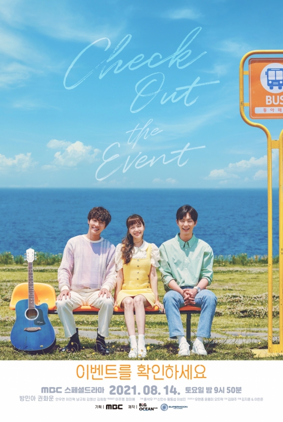 그런가 하면 이번 포스터에서는 보기만 해도 시원해지는 제주도의 푸른 바다가 가장 먼저 시선을 사로잡는다, 바다를 배경으로 감귤색의 작은 버스 정류장 의자에 나란히 앉아있는 방민아, 권화운, 그리고 안우연의 꼭 닮은 듯한 함박 미소는 보는 이들의 기분마저 행복해지게 만드는 매력을 발산한다. 이처럼 포스터 비주얼만으로도 지금 당장 제주도로 떠나고 싶게 만드는 '이벤트를 확인하세요'가 본 방송에서는 어떤 특별한 여행으로 시청자들의 눈과 귀를 만족시킬 것인지 기대가 나날이 높아지고 있다.