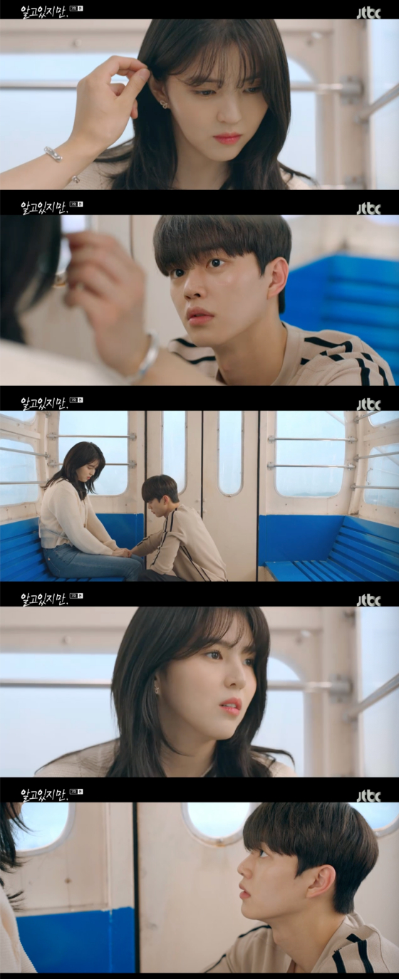 31일 방송된 JTBC 토요스페셜 드라마 '알고있지만,'에서는 함께 관람차에 탑승한 유나비(한소희 분)와 박재언(송강 분)의 모습이 그려졌다.