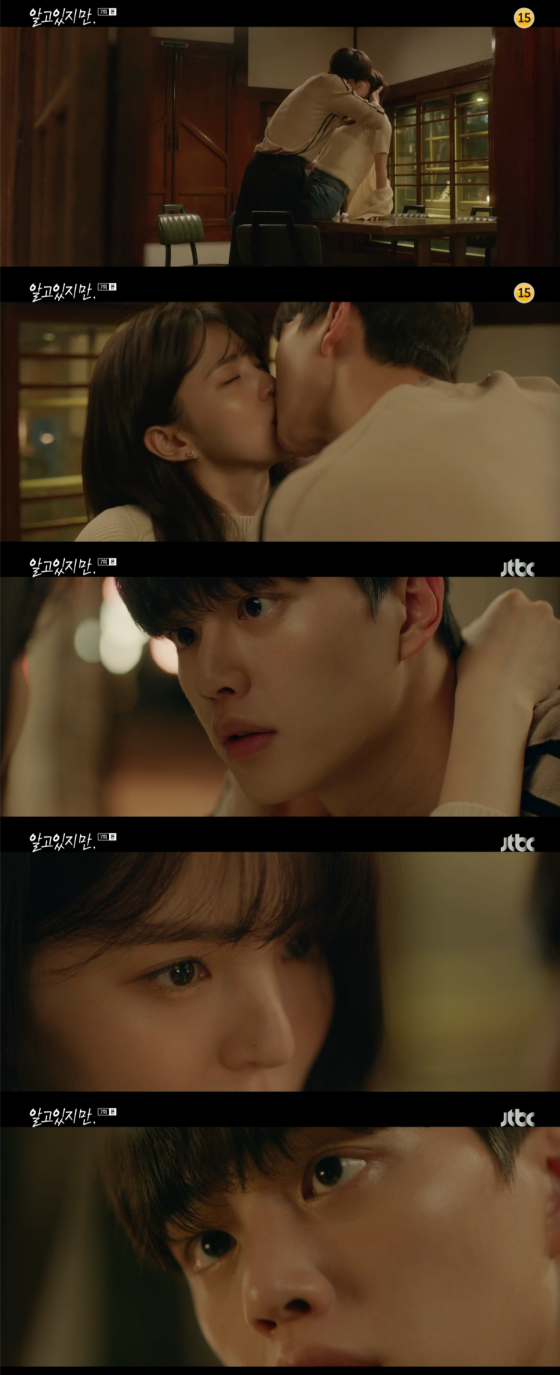 '알고있지만' 배우 송강과 한소희가 짙은 입맞춤을 나눴다.