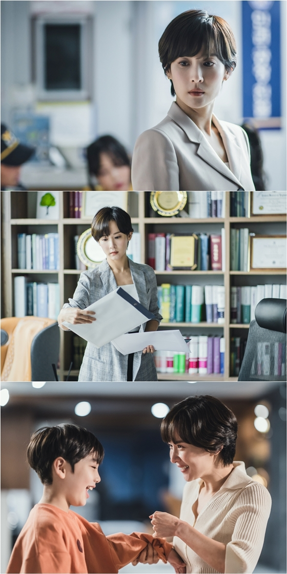그런 가운데 조여정이 파격적인 숏컷 헤어스타일의 송여울로 완벽하게 변신한 첫 촬영 스틸이 공개돼 이목을 집중시킨다. 공개된 스틸 속 송여울의 이지적인 매력이 돋보이는 한편, 냉철한 눈빛이 시선을 압도한다. 상대의 모든 것을 꿰뚫어보는 듯 예리하게 빛나는 눈빛과 단단한 표정에서 높은 승률의 변호사 포스가 뿜어져 나와 보는 이를 숨죽이게 한다. 이와 함께 에이스 변호사로 사건 관련 서류를 정리중인 송여울의 모습이 공개된 가운데, 등 뒤로 깔끔하게 정돈된 상패와 서적들의 모습이 일에 대한 열정과 커리어를 엿보게 한다.