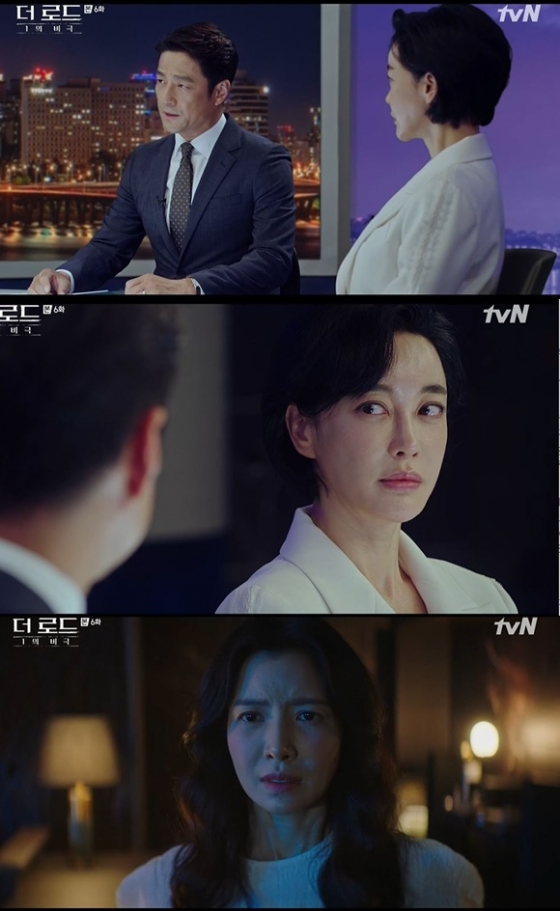 19일 오후 방송된 tvN 수목드라마 '더 로드 : 1의 비극'에서는 아들 유괴 사건을 보도하는 차서영(김혜은 분)과 그와 함께 한 백수현(지진희 분)의 모습이 그려졌다.