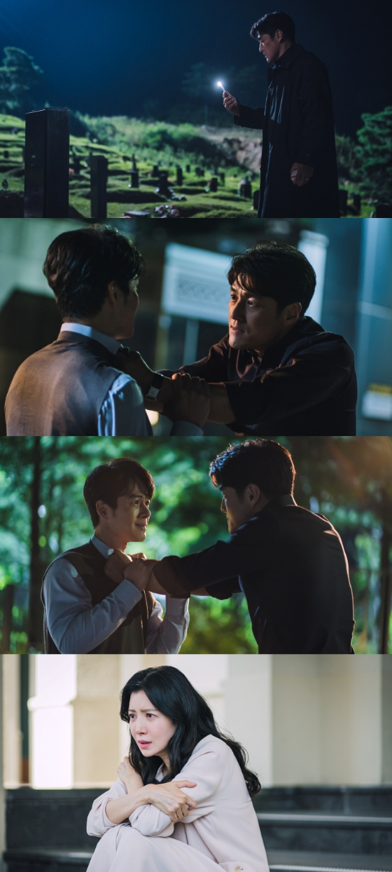 또 다른 사진에는 오장호의 멱살을 쥔 백수현이 금방이라도 폭발할 듯 분노하고 있어 불안한 기운까지 감돈다. 오장호는 죽은 아내의 쌍둥이 언니 서은수에게 제 아내를 투영하며 집착에 가까운 행동을 보였고, 서은수 역시 불안에 떨면서도 관계를 지속해왔다. 이를 눈치챈 차서영(김혜은 분)이 백수현에게 의심의 씨앗을 심었고, 애써 모른 척하던 그의 눈에도 점점 아내의 거짓말이 눈에 들어오기 시작한 상황.