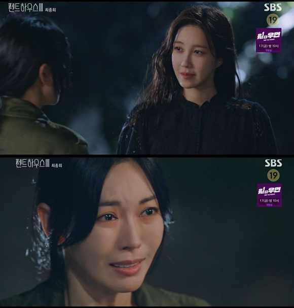 이날 천서진은 자신의 악행을 멀리서 지켜본 딸 하은별을 발견했다. 하은별이 천서진을 경찰에 신고했고, 천서진은 "심수련 너만 아니었어도 내 인생은 완벽했어. 너만 내 인생에 나타나지 않았어도 내 가정이 깨질 일도 없었고 주단태(엄기준 분) 같은 인간이랑 엮일 일도 없었어"라며 원망했다.