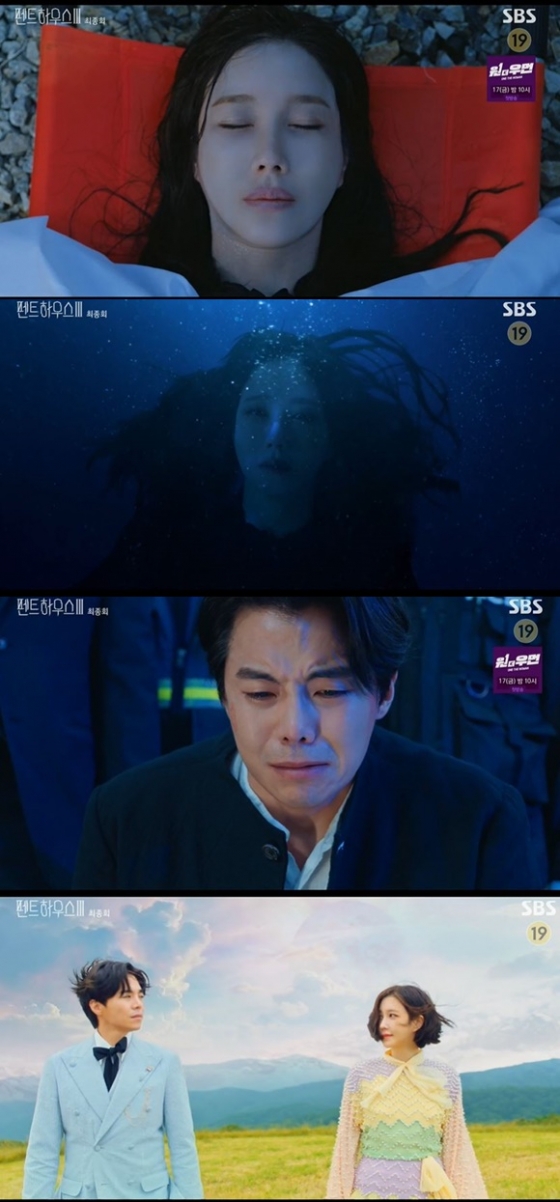 '펜트하우스 시즌3'에서 이지아와 박은석이 이승에서 못 이룬 사랑을 하늘나라에서 이루며 해피엔딩과 새드엔딩의 경계를 넘나들었다.