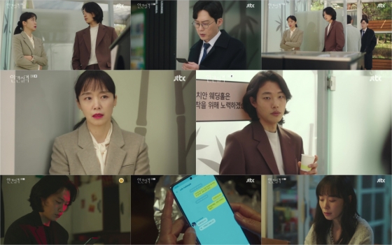 한편, 아란(박지영 분)은 진섭(오광록 분)과 자신이 30년째 부부이자 아이까지 있다는 사실을 폭로한 게시물을 확인했다. 부정의 짓이라 의심한 아란은 그에게 메시지를 보냈다. 부정은 메신저 창을 열어 'cafe-hallelujah(할렐루야)'라는 대화명을 검색했다. 불과 사흘 전 아란과 진섭에 관한 글을 올린 SNS 계정과 동일한 것이었다. 그리고 부정의 메시지 알림음이 울린 건 다름 아닌 죽은 정우의 휴대폰이었다. '오랜만입니다'라는 짧은 인사에 이어진 '이부정이에요. 아직 기억하고 계실지'라는 단 두 문장에 강재는 가슴이 덜컥 내려앉았다. 그리고 한참의 기다림 끝에 부정에게도 답장이 도착했다. 강재는 복잡한 마음과 떨리는 손끝으로 정우를 대신해 메시지를 이어갔다.
