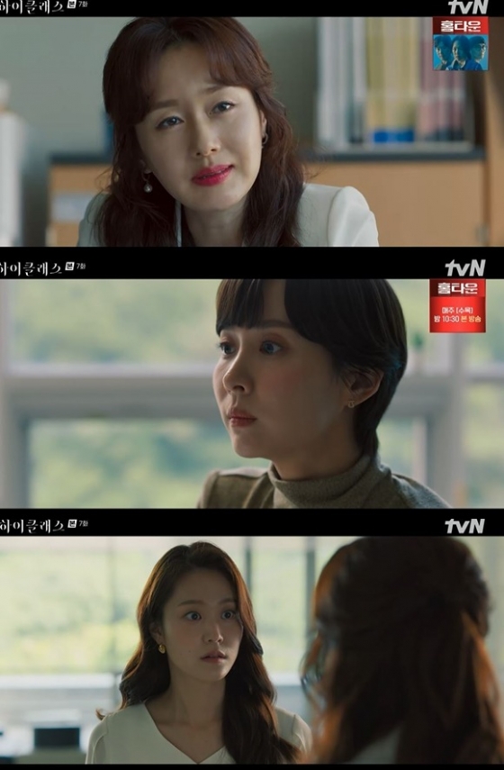27일 오후 방송된 tvN 월화드라마 '하이클래스'에서 송여울(조여정 분)의 남편과 황나윤(박세진 분)의 남편이 같다는 소문이 떠돌았다.