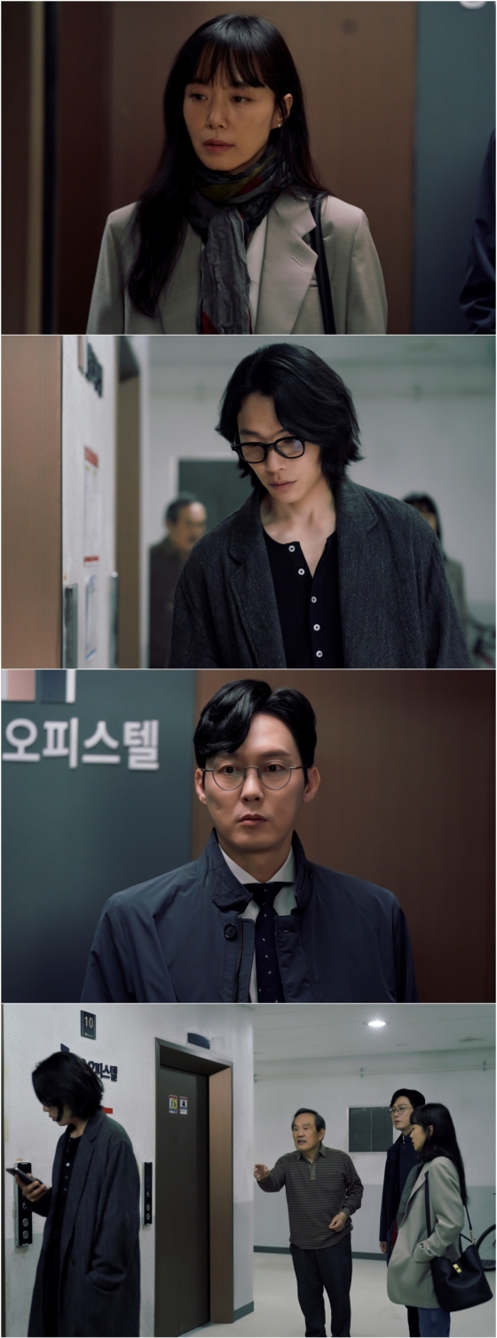 그런 가운데 공개된 사진에는 아버지 창숙(박인환 분)의 배웅과 함께 집을 나서는 부정, 정수의 모습이 담겨있다. 엘리베이터를 기다리던 강재는 등 뒤로 느껴지는 부정의 인기척을 애써 모르는 척 외면한다. 부정도 불편하고 어색하기는 마찬가지. 이런 속내도 모른 채 '끝집 총각' 강재를 불러 세우는 창숙의 손짓이 흥미진진하다. 결국 한 엘리베이터에 몸을 실은 부정, 강재, 정수. 세 사람 사이에 흐르는 어색한 분위기가 숨 막히는 긴장감을 자아낸다. 특히 앞서 공개된 예고편에서 정수가 강재의 뒷모습을 바라보며 "어디서 본 것 같은데, 방금 나간 저 사람"이라고 말해 궁금증을 고조시켰다.