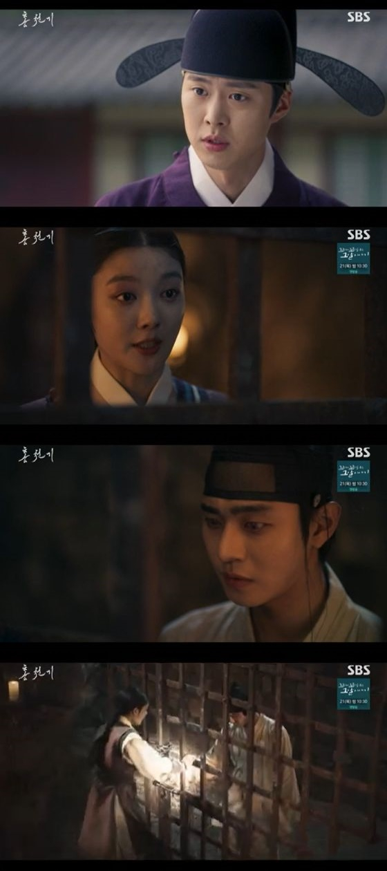 11일 오후 방송된 SBS 월화드라마 '홍천기'에서는 감옥에 갇힌 하람(안효섭 분)을 만나러 숨어드는 홍천기(김유정 분)의 모습이 그려졌다.