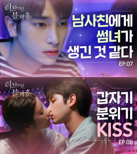 '러브 인 블랙홀' 제작사 '로그인 비피엠'의 공식 유튜브 채널 '빅픽처 마트'를 통해 공개된 7, 8화에서는 태양(한결)을 향한 자신의 마음이 무엇인지 헷갈려 하는 은하의 모습이 담겼다.