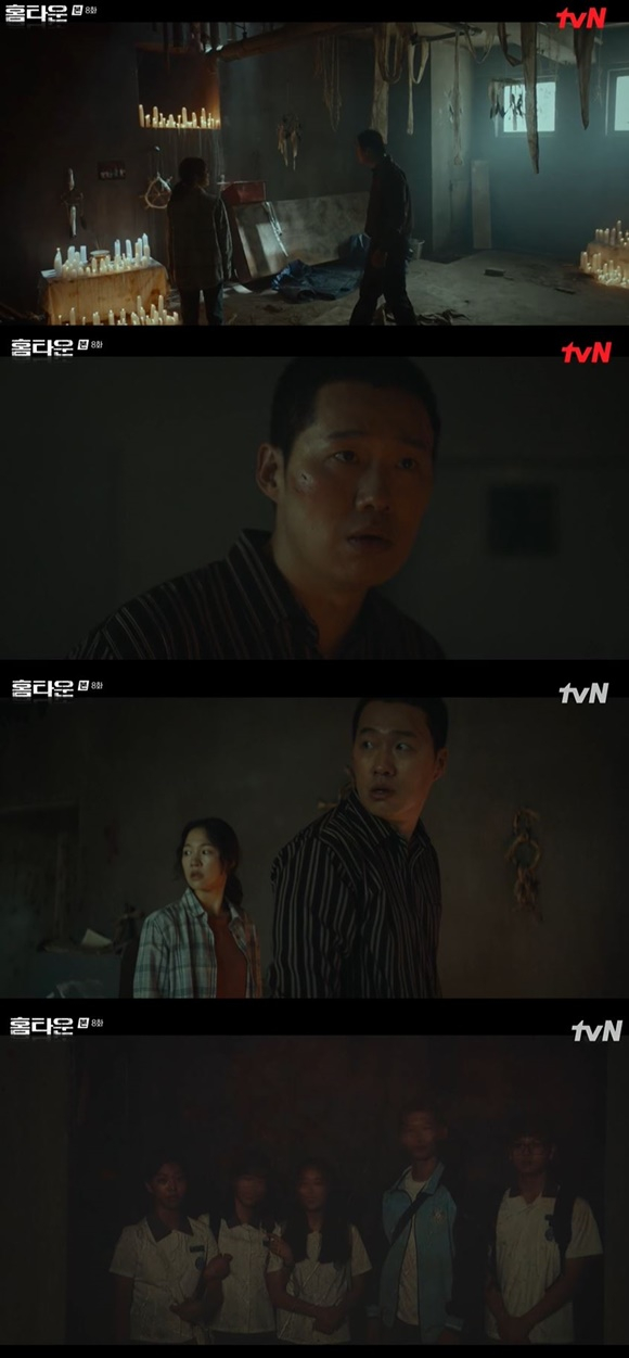 이날 조정현은 "수수께끼 같은 장소를 남겨뒀을지 모른다"며 복도 끝 지하로 향하는 계단을 발견했다. 계단을 내려가자 지하 교실이 등장했고 그 안에는 온통 촛불로 둘러싸여 있었다.