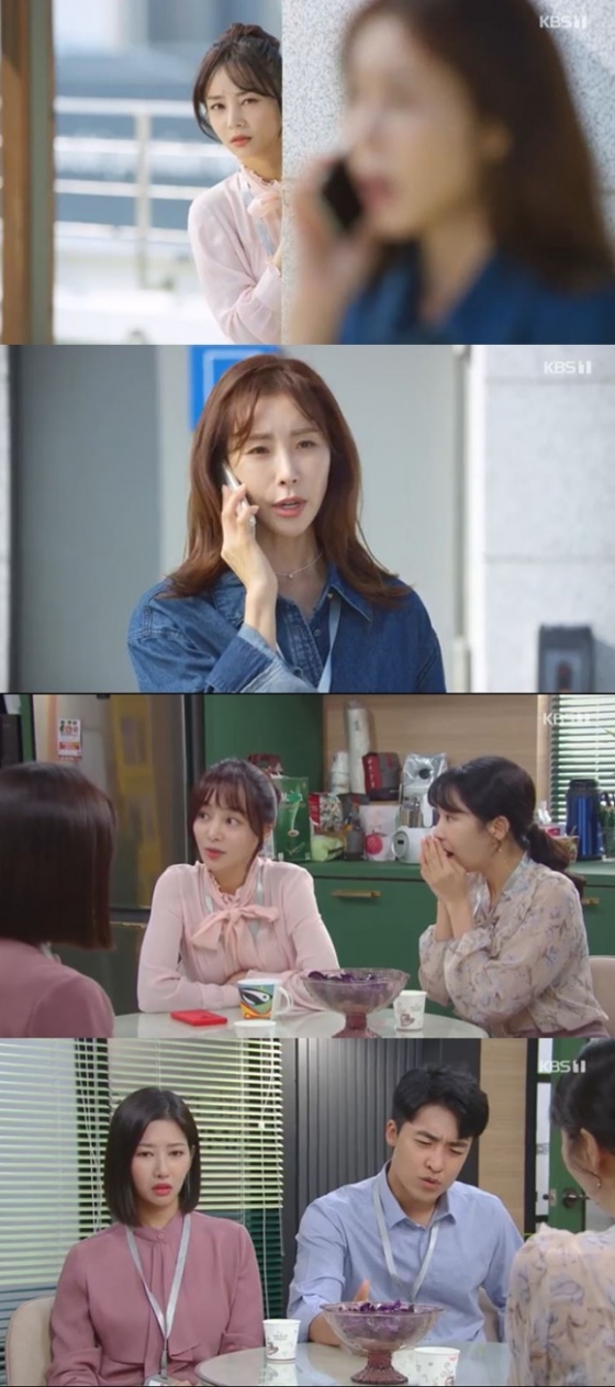 18일 오후 방송된 KBS 1TV 일일드라마 '국가대표 와이프'에서 서초희(한다감 분)의 통화내역을 엿듣는 구로미(김재인 분)의 모습이 그려졌다.