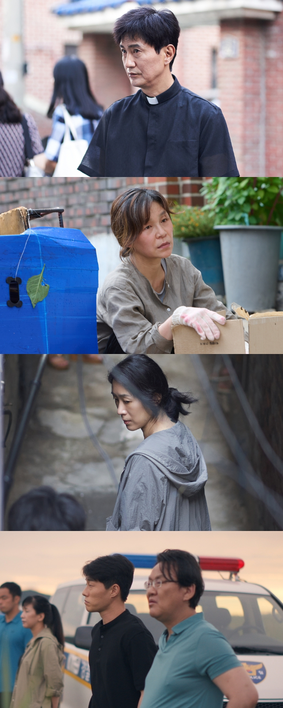 이어 무료한 듯 폐지를 줍는 노파에게서는 무미건조함이 느껴지는가 하면, 형사 윤광숙의 차갑게 굳은 낯빛과 두려움이 서린 시선에는 말로 형용할 수 없는 공포감이 엄습하는 듯해 궁금증을 유발한다. 반면 경찰팀장과 후배형사는 무관심한 얼굴을 지어 보여 과연 이들을 둘러싼 살인사건의 정체는 무엇인지 베일에 싸인 스토리를 향한 관심이 모아지고 있다.