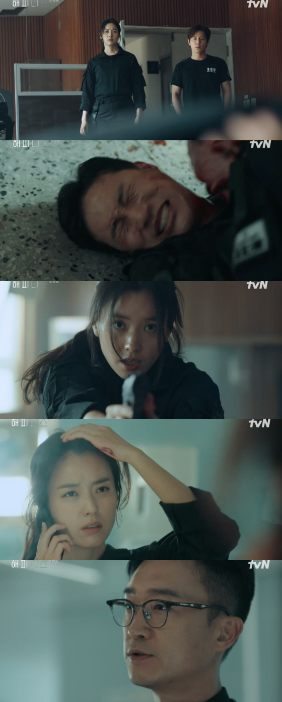 이날 윤새봄은 감염병에 걸린 이종태를 제압하다 이종태에 물렸다. 앞서 정이현(박형식 분)이 윤새봄에게 경찰 실습생인 이종태가 약물 복용으로 부작용을 겪는다고 했고, 윤새봄은 이를 파헤쳐 실적을 올리면 경찰 특공 아파트에 들어갈 수 있을 거라 생각했다.