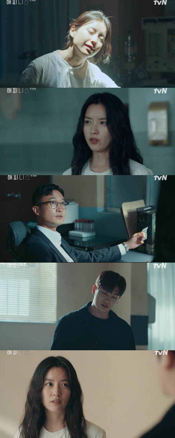 '해피니스'의 한효주가 감염병 위험에 노출된 후 박형식에게 프러포즈하며 앞으로의 전개에 궁금증을 자아냈다.