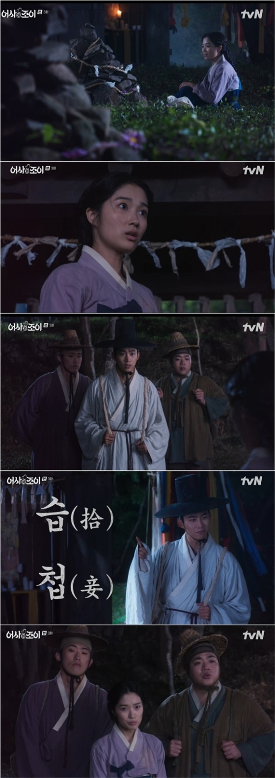 '어사와 조이'에서 김혜윤이 이혼 후 성황당 앞에서 처음 만난 옥택연과 재혼할 위기에 처했다.