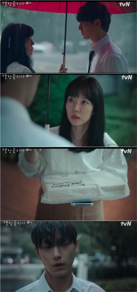 25일 오후 방송된 tvN 수목드라마 '멜랑꼴리아'에서 지윤수(임수정 분)와 백승유(이도현 분)가 빗속에서 함께 우산을 쓰고 대화하는 모습이 그려졌다.