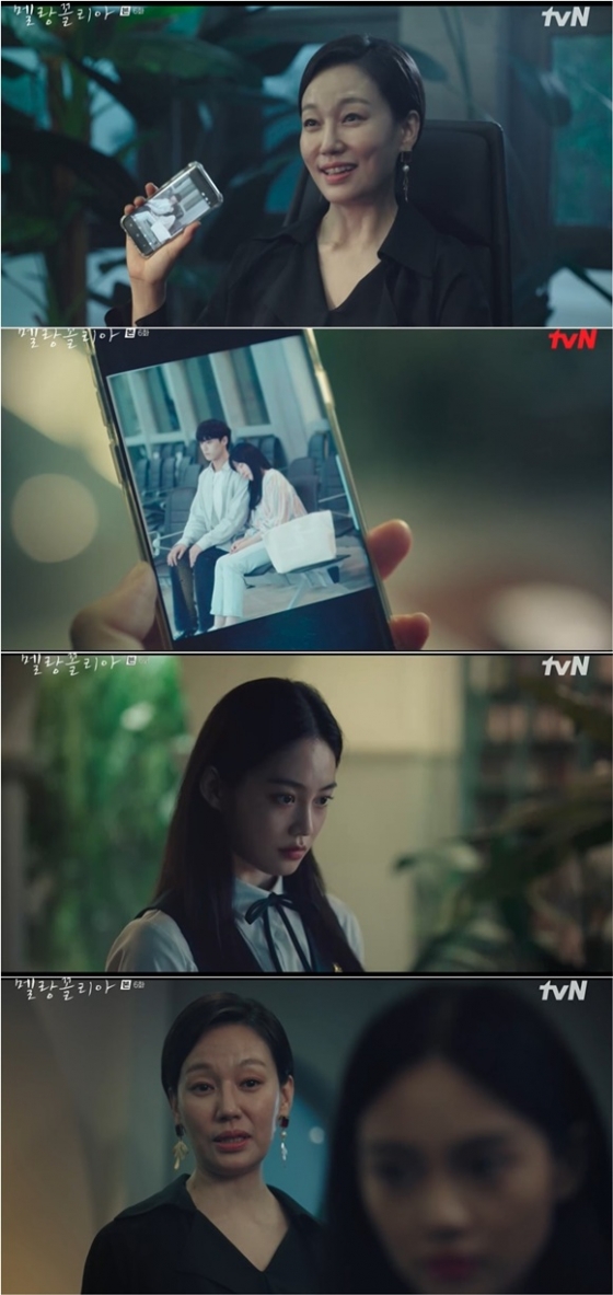 25일 오후 방송된 tvN 수목드라마 '멜랑꼴리아'에서 성예린(우다비 분)이 교무부장 노정아(진경 분)에게 사진 한 장을 보여주는 장면이 그려졌다.