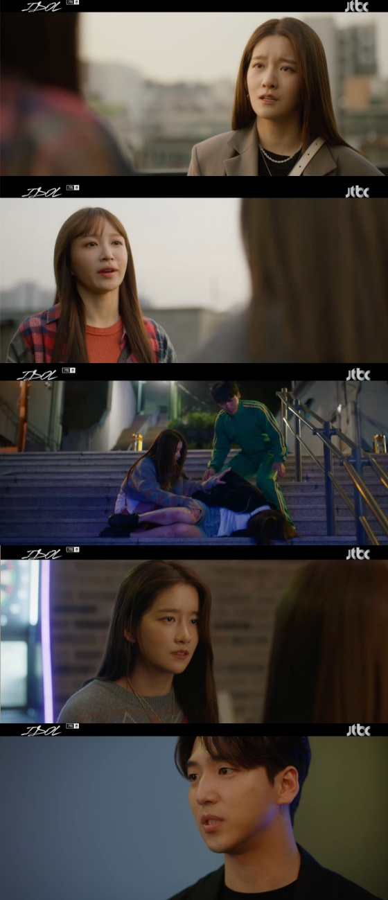 29일 오후 방송된 JTBC 월화드라마 '아이돌 더 쿠데타'에서 제나(안희연 분)가 엘(추소정 분)에게 트로이(차선우 분)에게 곡 작업을 부탁해달라고 했다.