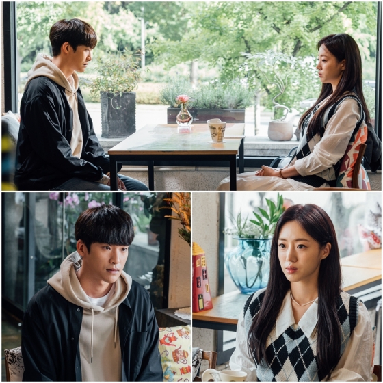 이와 관련 함은정과 김진엽이 서로에게 시선을 고정시킨 채 냉랭한 분위기를 자아내는 '살얼음판 아이콘택트' 현장이 포착됐다. 극중 오소리(함은정 분)와 박하루(김진엽 분)가 마주하고 앉아 진지하게 대화를 나누는 장면. 오소리는 또박또박 설명을 이어가던 중 감정이 북받친 듯 울컥 눈물을 내비친 반면, 박하루는 우물쭈물 속내를 밝히지 못한다. 서로를 향해 좋아하는 감정을 숨긴 채 '꽈배기'를 이끌어 온 두 사람이 이토록 심각한 기운을 드리운 이유는 무엇일지, '극과 극' 감정이 고스란히 드러난 두 사람의 '얼음장 대면'에 귀추가 주목되고 있다.
