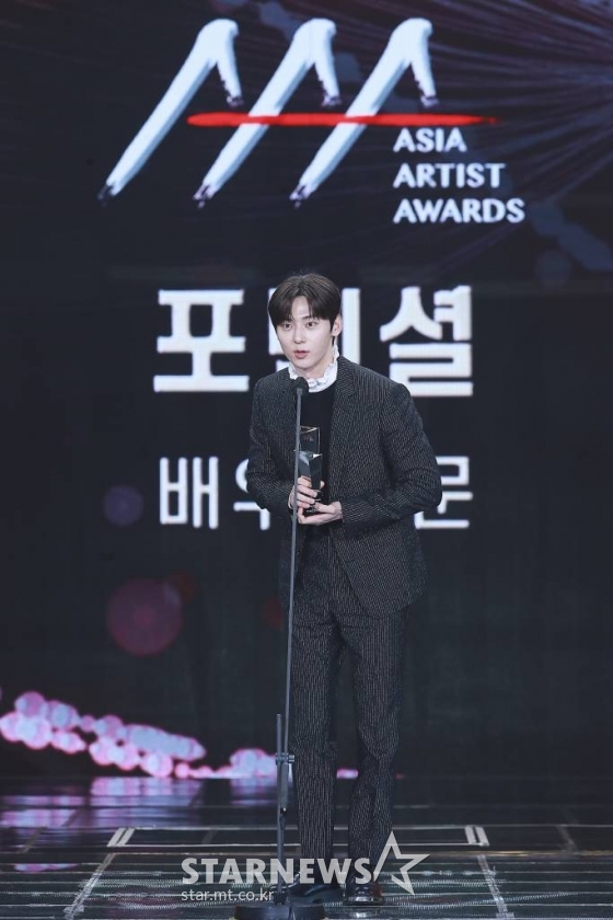 이날 AAA 포텐셜상을 수상한 황민현은 "이렇게 매년 AAA에 참석할 수 있어서 영광이다. 오늘은 조금 특별하게 가수로서 배우로서 참석을 하게 되어 그것만으로도 설레고 기뻤다. 이렇게 값지고 과분한 상까지 받게 되어 너무 행복하다"고 소감을 전했다.