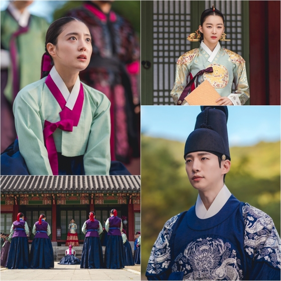 스틸에는 추국장이 꾸려진 중궁전의 모습이 담겨 있어 시선을 강탈한다. 무엇보다 중궁전 마당에 꿇어앉아 죄를 청하고 있는 이가 덕임이라는 점이 충격적이다. 또한 덕임의 표정에서 간절함과 다급함이 드러나는데 반해, 그런 덕임에게 일말의 동요도 없는 중전 김씨(장희진 분)의 고요한 눈빛이 무서울 정도다. 그런가 하면 덕임의 추국장에 등장한 산의 존재 역시 눈길을 끄는 대목. 그는 중전 앞에서 예를 갖추고 서서 냉철한 표정으로 무언가를 발언하고 있다. 이 같은 산의 등판이 위기에 빠진 덕임의 운명에 어떤 영향을 미칠지 관심이 높아진다.