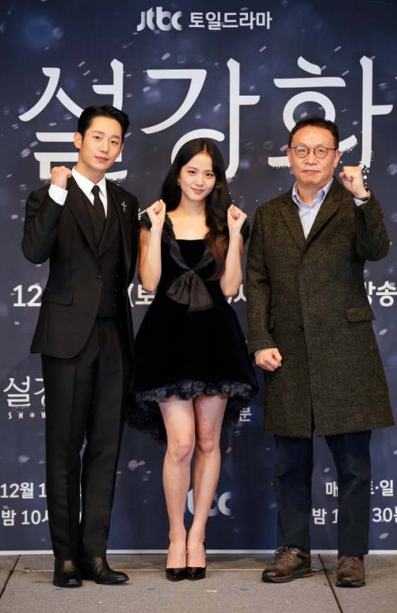 배우 정해인과 지수, 조현탁 감독이 16일 오후 온라인으로 진행된 JTBC 새 토일극 '설강화' 제작발표회에 참석해 포즈를 취하고 있다. 2021.12.16 <사진=JTBC> /사진=임성균 기자 tjdrbs23@