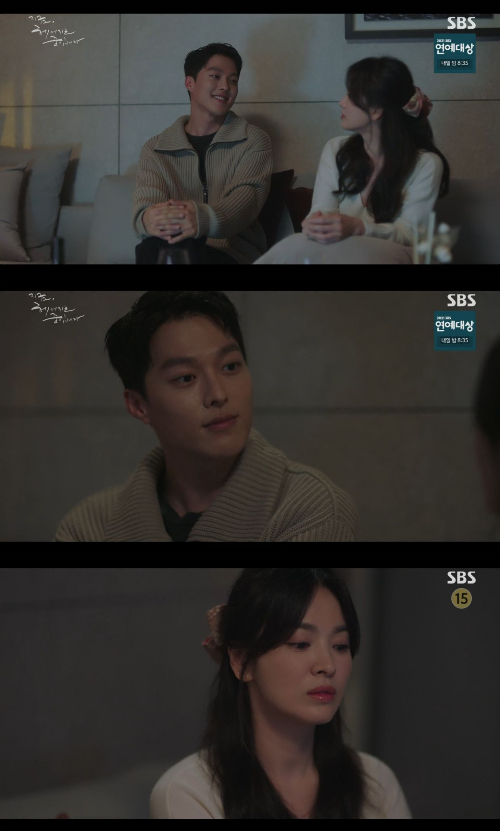 17일 방송된 SBS 금토 드라마 '지금, 헤어지는 중입니다'에서 하영은(송혜교 분)과 윤재국(장기용 분)이 나란히 거실에서 영화 '라라랜드'를 보는 모습이 그려졌다.