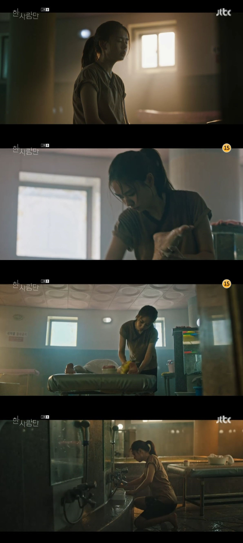 20일 오후 방송된 JTBC 월화드라마 '한 사람만' 첫 방송에서는 세신사에서 악착같이 일하며 할머니 육성자(고두심 분)와 단둘이 살고 있는 표인숙(안은진 분)이 아버지의 폭력에 치여 사는 하산아(서연우 분)를 구해주는 모습이 그려졌다.