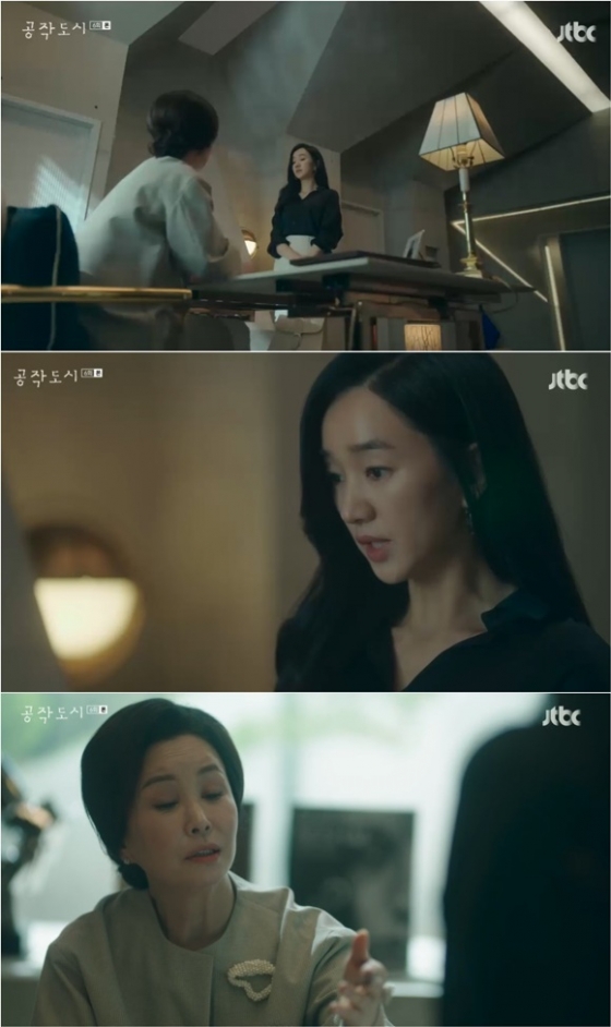 23일 오후 방송된 JTBC 수목드라마 '공작도시'에서 윤재희(수애 분)와 서한숙(김미숙 분)이 대화하는 장면이 그려졌다.