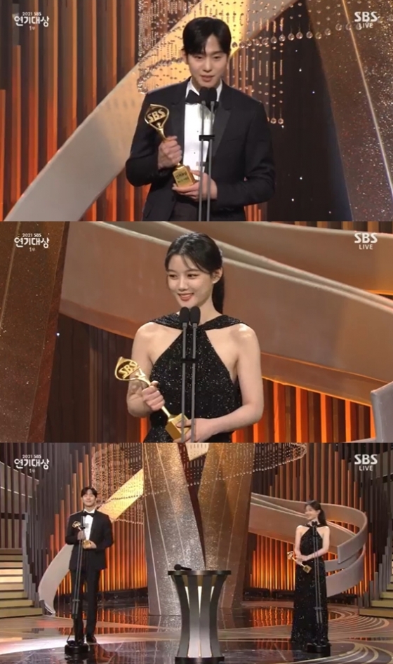 배우 안효섭과 김유정이 '2021 SBS 연기대상'에서 베스트커플상을 수상했다.