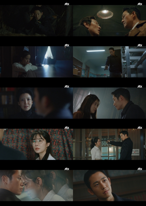 1일 방송된 JTBC 토일드라마 '설강화 : snowdrop'(이하 '설강화' / 극본 유현미/ 연출 조현탁/ 제작 드라마하우스스튜디오, JTBC스튜디오) 6회에서 영로(지수 분)가 호수여대 기숙사 학생들을 인질로 잡은 수호(정해인 분)와 대립했다.